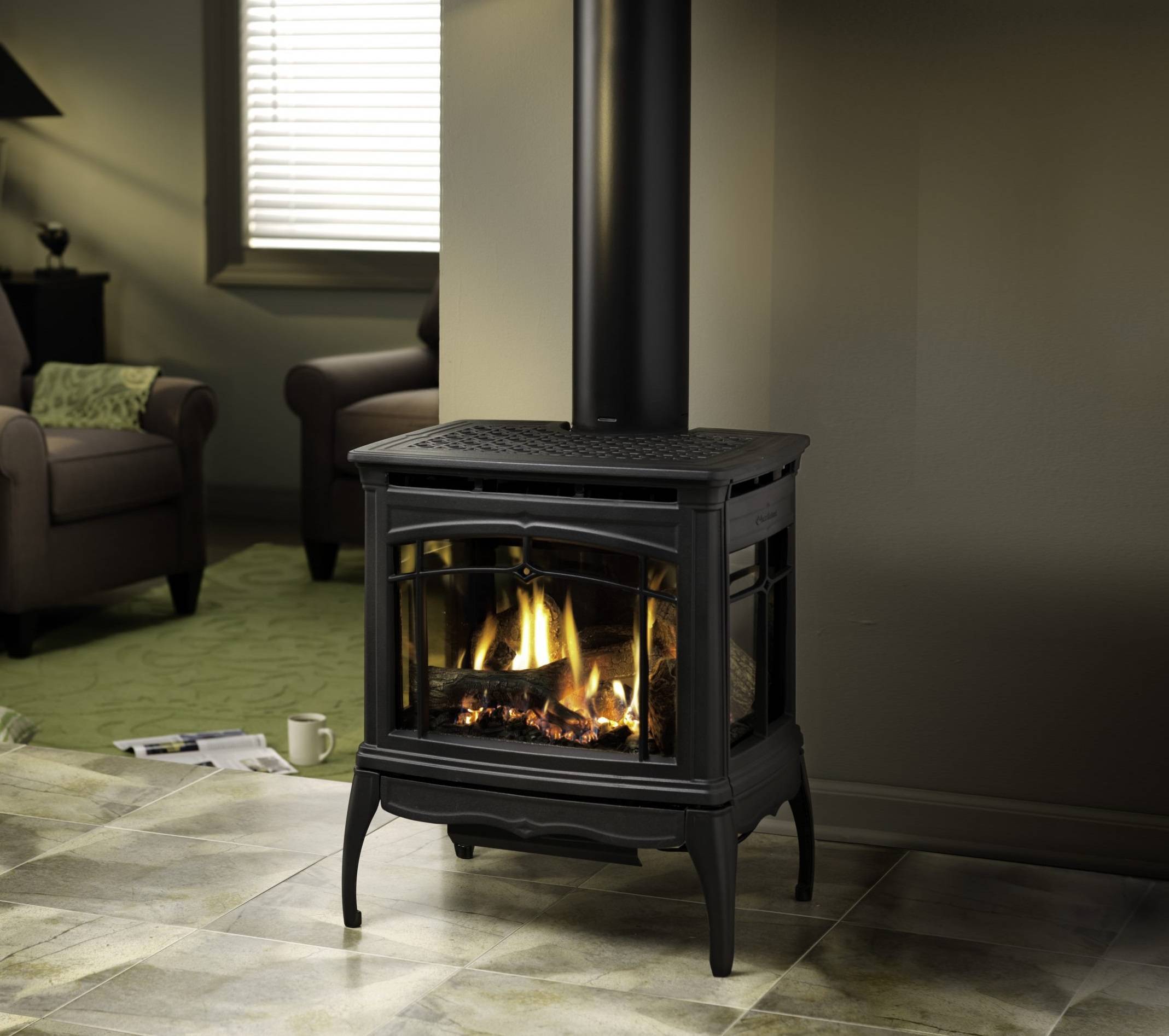 Our efficient and versatile cast iron gas stove offers a view of the fire from three sides. Beautiful designs, careful craftsmanship and reliable technology. The quality of our products is displayed in the intricate details of the cast iron and the warm flickering glow of the fire. Enjoy the warmth and ambiance of a burning fire that lights with the push of a button. Simply adjust the fire using the remote control to keep your home cozy and comfortable. The Bristol includes a cast iron heat exchanger and a built-in blower to keep the heat in your home.Blower: Included