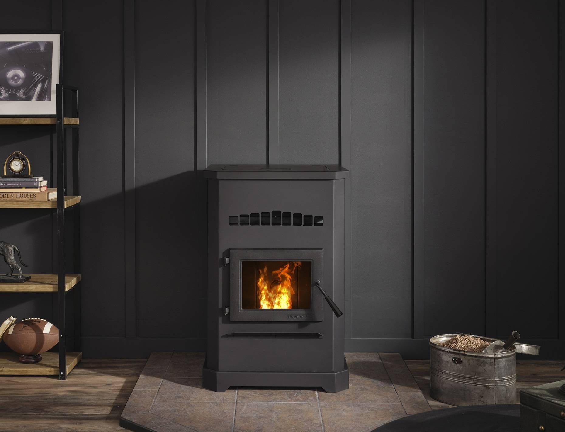 The Quadra-Fire Outfitter-II pellet stove is reliable, convenient, and cost-saving heat from a pellet stove. Not only keeping you warm, but also helping you “live green” with a renewable, clean and dependable fuel. Easily set your comfort level with the dial control or wall thermostat and save money with EPA-certified efficiency. Save 30% with the Biomass Tax Credit.